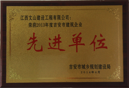 2014年,文山建设荣获2013年度吉安市建筑企业先进单位