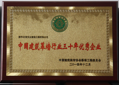 2014年12月,文山建设工程有限公司被评为中国建筑幕墙行业三十年年优秀企业