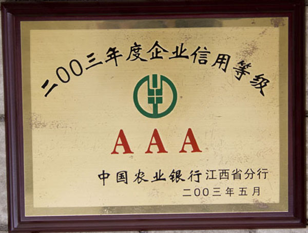 2003年,文山建设工程有限公司(原吉安市装饰工程总公司)2003年度企业信用等级AAA级
