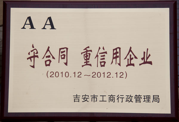 2010年12月,文山建设工程有限公司荣获吉安市守合同重信用AA企业